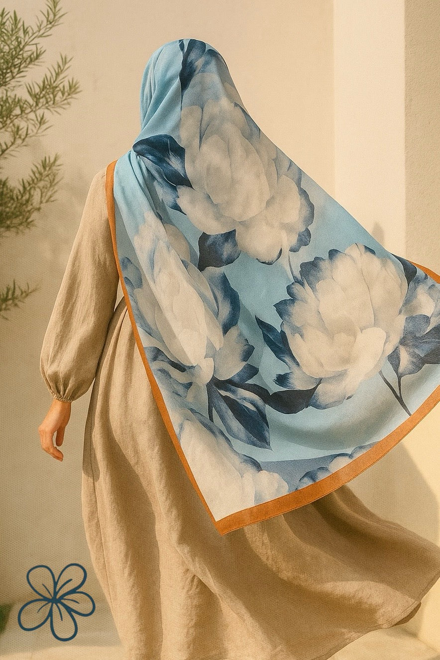 Meet the Frosted Bloom Hijab, a soft and graceful statement piece inspired by icy blue florals and serene watercolor textures. Crafted from 100% premium viscose, this hijab offers a beautifully fluid drape, staying lightweight, breathable, and comfortable throughout the day.